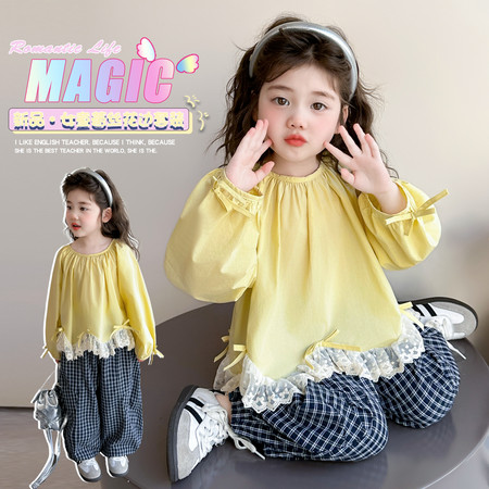 1*0收藏“YXB2601黄色花边格子套装-三标齐全”